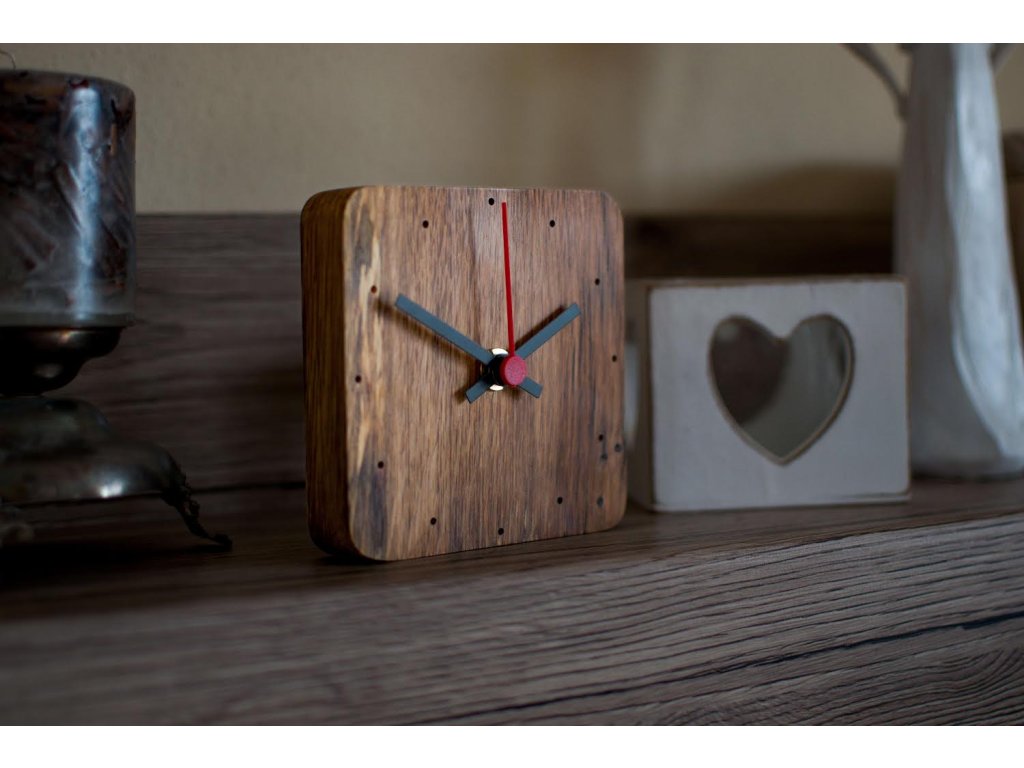 Hodiny sú vyrobené zo starej dubovej dosky. Elegantný tvar, sfarbenie a samotný vek dreva, dodáva hodinám ich jedinečnosť. Jemne vyznačené bodky číselníka ukážu vždy presný čas. Zaručene oživia vašu poličku, alebo stôl vo vašom príbytku.