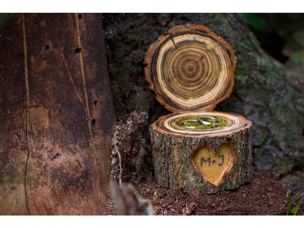 Obrúčky budú uložené na mäkkom pravom machu, o bezpečné uzavretie krabičky sa postará mosadzný pántik a nenápadné no silné magnety.