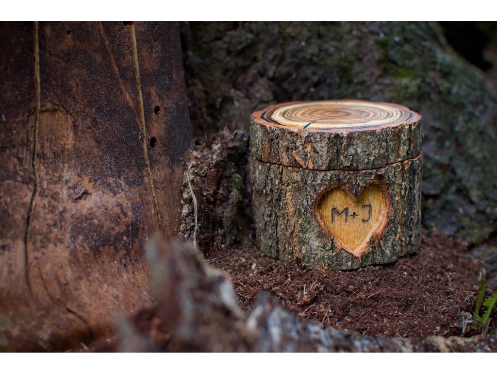 Kúzelná krabička so srdiečkom vyrezaným do kôry. Spolu s Vašimi iniciálami v srdiečku, Vám bude krabička vždy pripomínať Váš veľký deň.