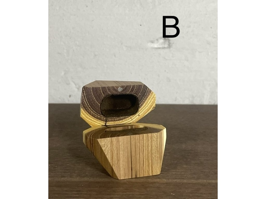 Krabička na zásnubný prsteň z agátového dreva rôzneho tvaru.