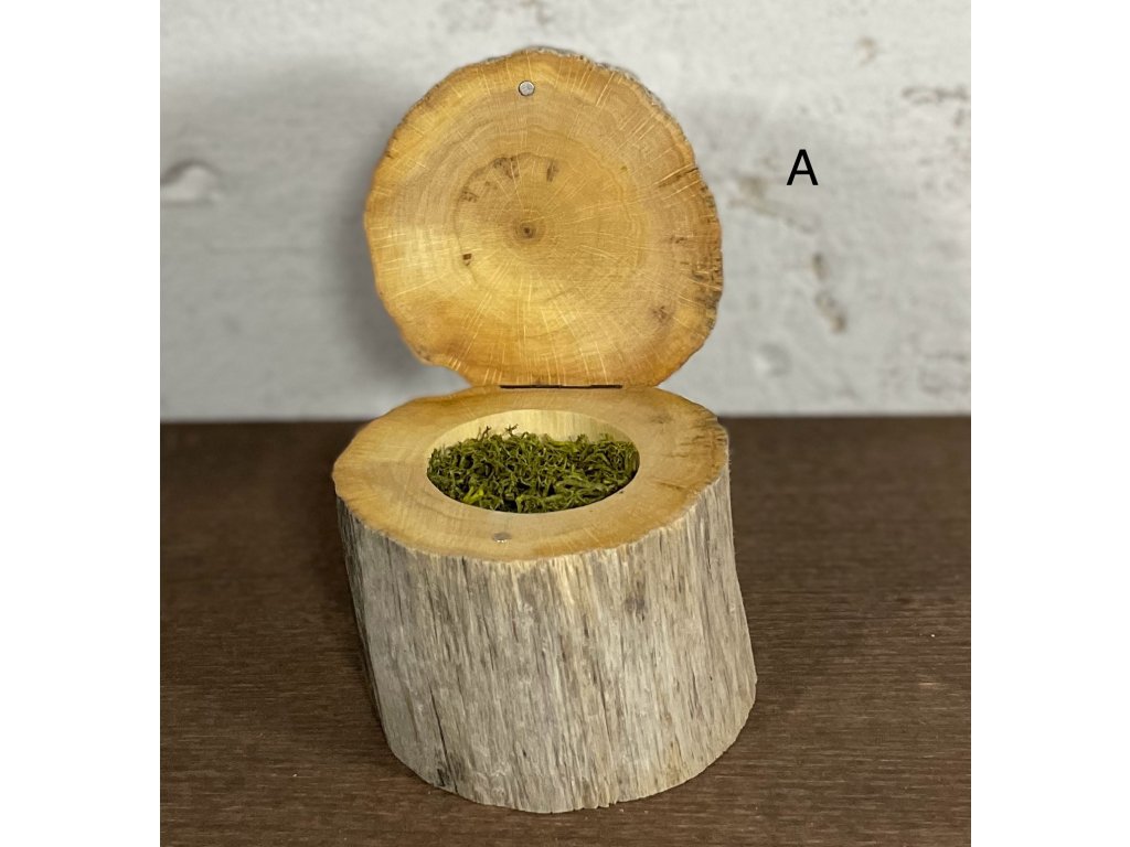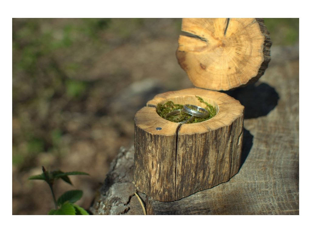 Drevená krabička na obrúčky - Hrab - Pníček